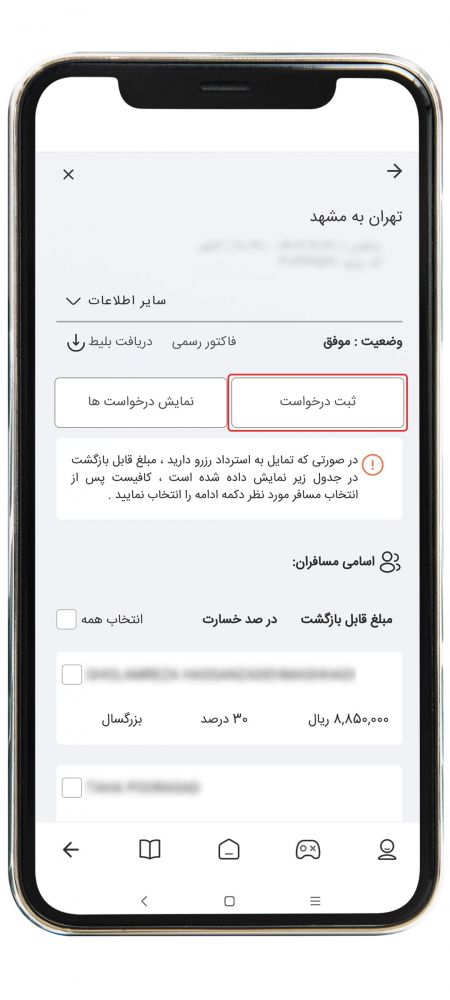 در مرحله بعد باید روی گزینه "ثبت درخواست" کلیک کنید.