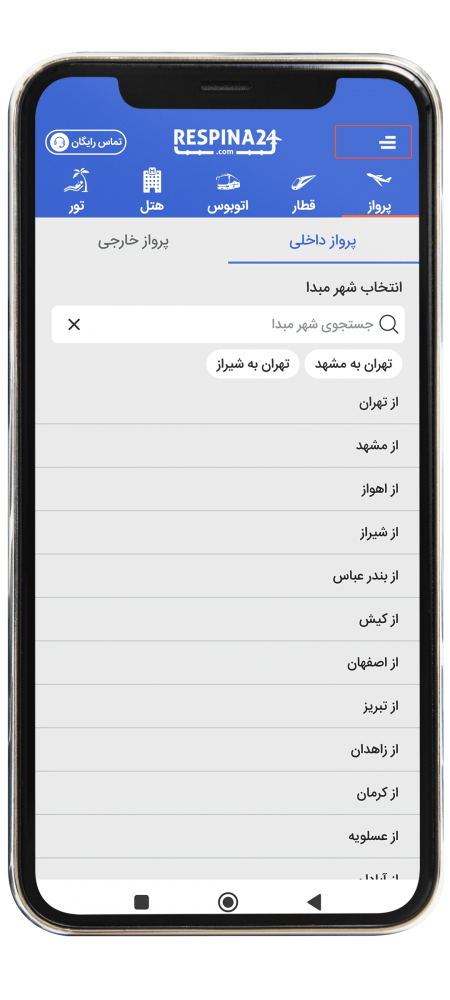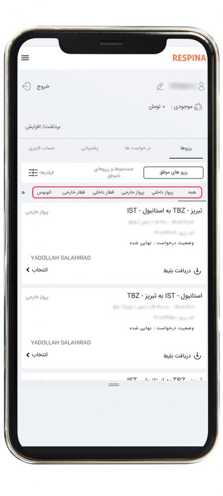ثبت درخواست تغییر تاریخ پرواز خارجی در وب سایت و اپلیکیشن رسپینا