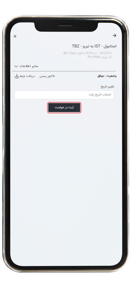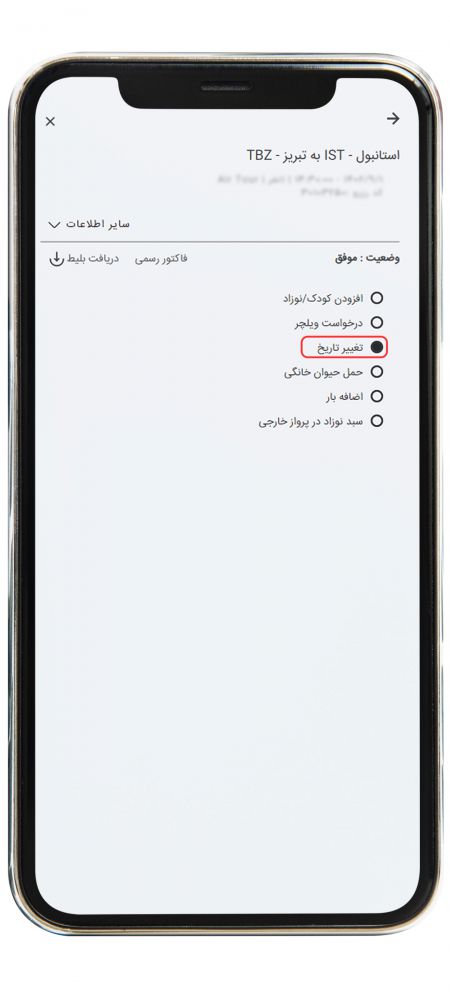 نحوه ثبت درخواست تغییر تاریخ پرواز خارجی از طریق موبایل