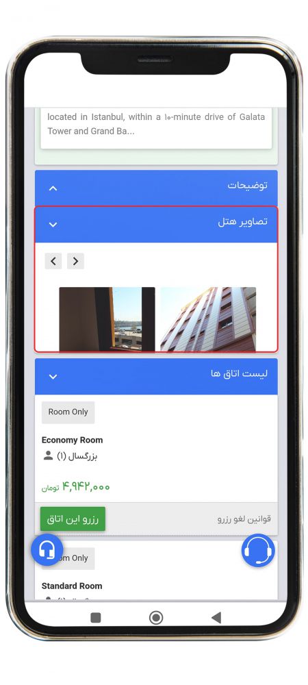 در پایین صفحه نیز می توانید تصاویر مربوط به هتل انتخاب شده را مشاهده کنید.