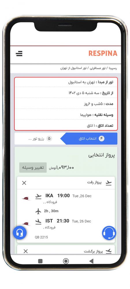 پس از ثبت درخواست، کارشناسان رسپینا، با شما تماس خواهند گرفت و توضیحات کامل را ارائه داده و فرآیند رزرو را انجام می دهند.