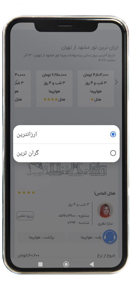 برای اعمال هر کدام از گزینه های "قیمت از کم به زیاد" ، "قیمت از زیاد به کم"، "ظرفیت از کم به زیاد" ، "ظرفیت از زیاد به کم" ، "زمان حرکت از کم به زیاد" ، "زمان حرکت از زیاد به کم" روی آن کلیک کنید.
