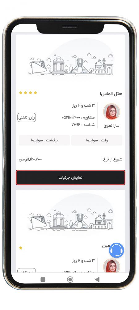 در توضیحات مربوط به هر پکیج تور، مدت زمان اقامت، آدرس و تعداد ستاره هتل، وسایله نقلیه رفت و برگشت، قیمت و سایر خدمات بطور کامل شرح داده شده است. پس از بررسی و مقایسه تورهای مختلف، روی گزینه "نمایش جزئیات" در کادر تور مد نظر کلیک کنید.