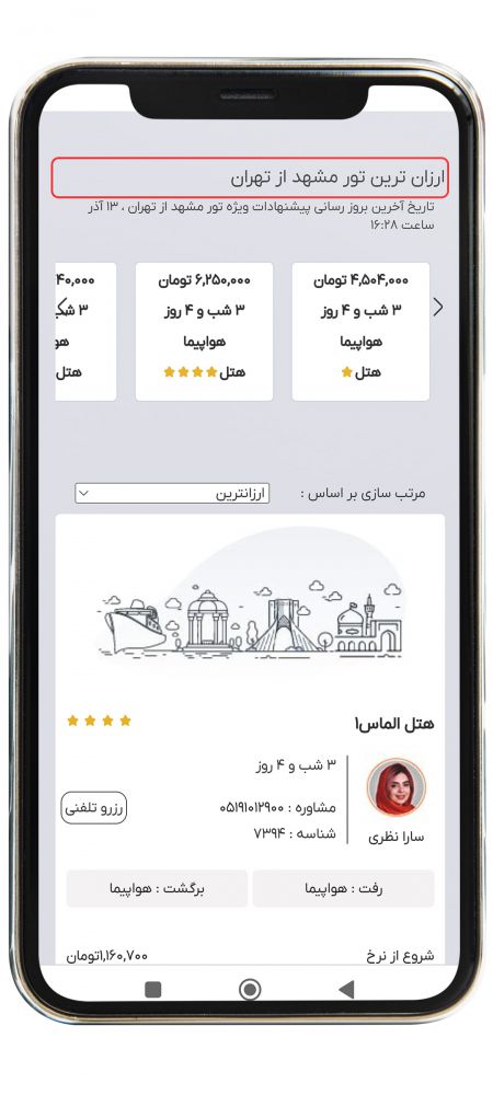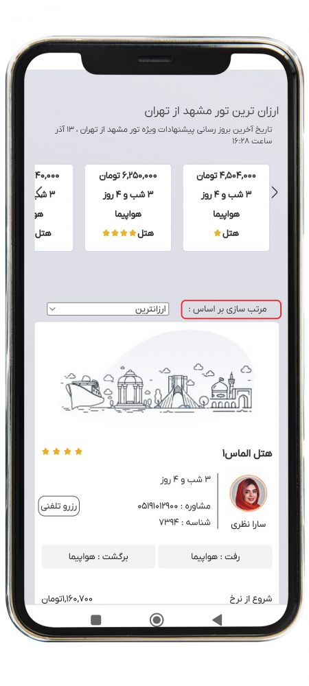 همچنین می توانید با استفاده از گزینه"قیمت" لیست پروازها را مرتب کنید.