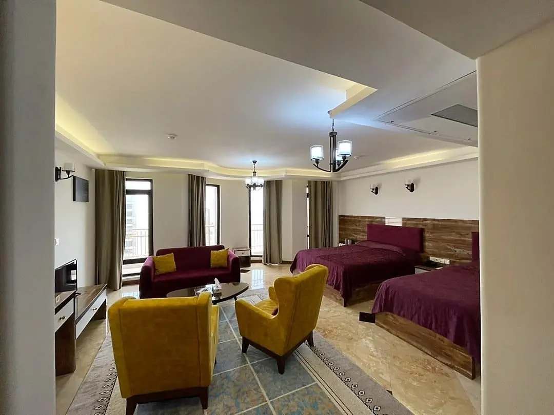 سوئیت یکخوابه دو نفره: این سوئیت ها از سالن نشیمن و یک اتاق خواب تشکیل شده و پنجره های آن رو به پاسیو باز میشود. در سوئیت های یک خوابه تا یک نفر اضافه پذیرش شده و برای آنها مبل تخت شو ارائه میشود.