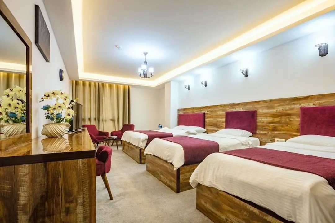 اتاق چهار تخته: این اتاق ها یک تخت دو نفره و دو تک نفره داشته و تا یک نفر اضافه در آنها پذیرش میشود. برای نفر اضافه مبل تخت شو ارائه میشود.