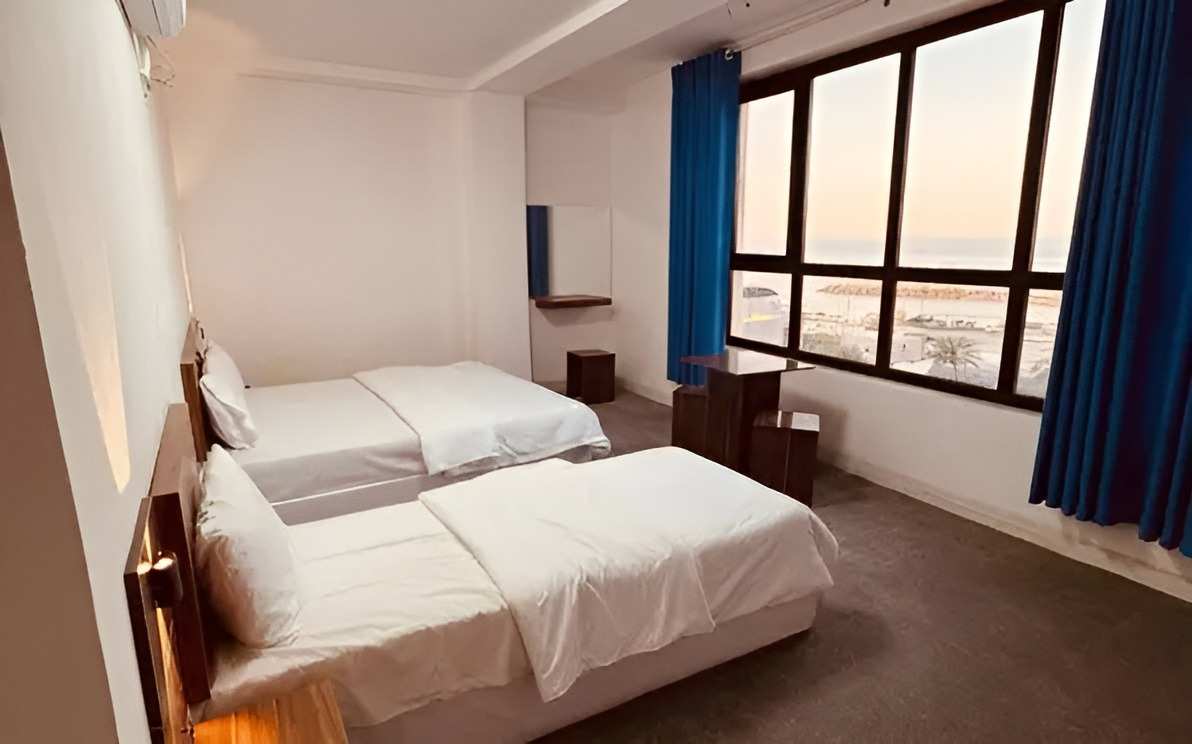 - اتاق سه تخته دریا: ظرفیت پذیرش این اتاق به اندازه 3 مهمان بوده، در ان یک تخت دبل و دو تخت سینگل قرار دارد و چشم انداز آن دریا می باشد.