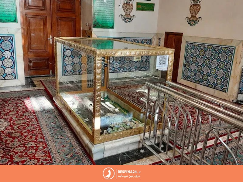 داخل آرامگاه، فضایی کوچک و صمیمی وجود دارد. دیوارها با گچ بری های ساده و منظم تزئین شده اند و نور طبیعی که وارد فضا می شود، حس آرامش و سکوت خاصی به محیط می دهد.